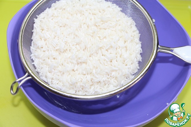 • Откинуть рис на сито.
