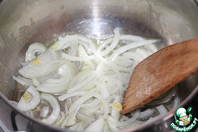 • Лук нарезать полукольцами
