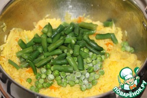 • Всыпать зеленый горошек и стручковую фасоль, крышку закрыть и варить еще 5-7 минут.