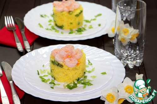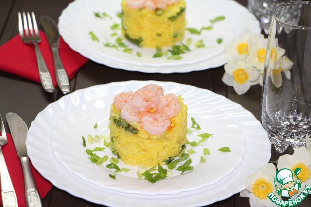 Солнечный рис с овощами и креветками