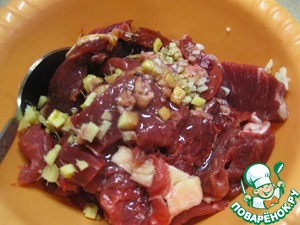 - Вино красное полусладкое (для маринада) — 1 ст. л.