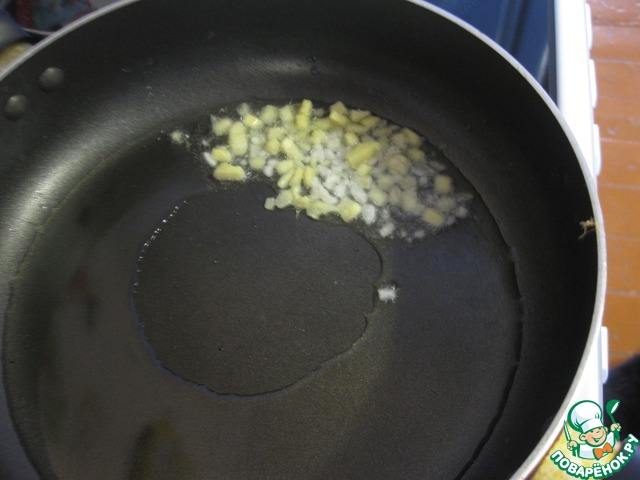 Разогреть на большой сковороде масло до появления дымка, добавить оставшийся чеснок и имбирь