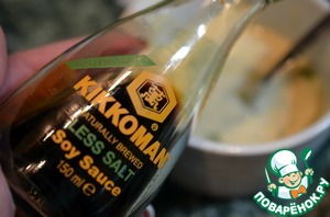 И 1 ст. л. соевого соуса Kikkomаn. Перемешать. Это заправка для нашего салата.