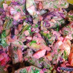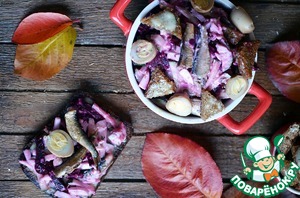 [+5]Нашла в поисковике по ингридиентам этот салат. Сухарики делала сама, из домашнего хлеба. Лук красный, немного его замариновала. По совету приготовивших перемешала сухарики с салатом и заправкой. Даже и не ожидала, что получится ТАК ВКУСНО! Очень интересный, оригинальный салат из обычных ингридиентов! Спасибо автору за рецепт!