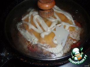 Накрыть крышкой и на маленьком огне минут 5, пока сыр не расплавится