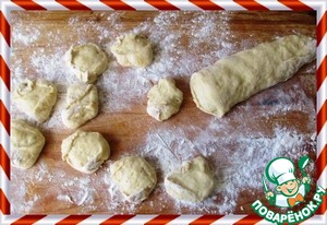 Вытягиваем тесто в жгут и нарезаем 16-17 небольших кусочков.