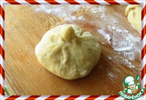 Края лепешечка собираем к центру, вроде завязанного мешочка