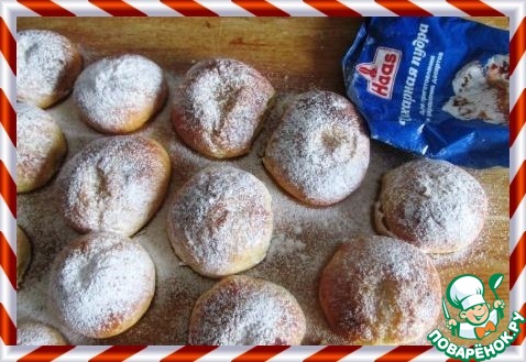 - Сахарная пудра (для посыпки готовых булочек) — 3 ст. л.