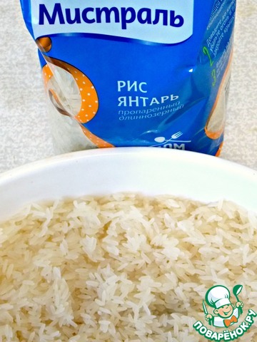 Пропаренный рис "Янтарь" от фирмы "Мистраль" промыть и уложить в форму. Такой рис всегда получается рассыпчатым, рисинка к рисинке.