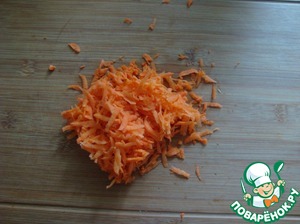 К луку выкладываем натёртую морковь. Яблоко тоже можно натереть. Я режу его мелким кубиком. Тоже отправляем в сотейник. Убавляем огонь на минимум и накрываем крышкой.