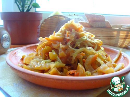 Тушим пол-часа. Готово! Когда едим с сосисками, то сосиски выкладываю прямо в капусту, порезанные пополам и через пять минут снимаю с огня.