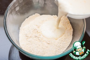 Влить жидкие ингредиенты в сухие, кратко перемешать.