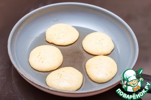 Важно! После расстойки не перемешивайте вновь тесто, берите его столовой ложкой с краю миски, выкладывайте на сковороду и обжаривайте с двух сторон на среднем огне в небольшом количестве растительного масла.