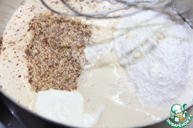Растительное масло, йогурт и молоко. Тщательно размешать.