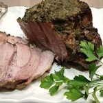 Подавать мясо горячим, сняв нитки и нарезав ломтиками.