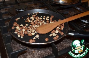 Грецкие орехи обжарить на сухой сковороде. Пламя не нужно делать слишком большое и главное постоянно мешать чтобы не пригорели.