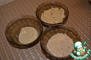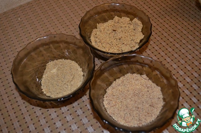 Грецкий орех, фундук и ядра подсолнечника по отдельности измельчить в блендере.