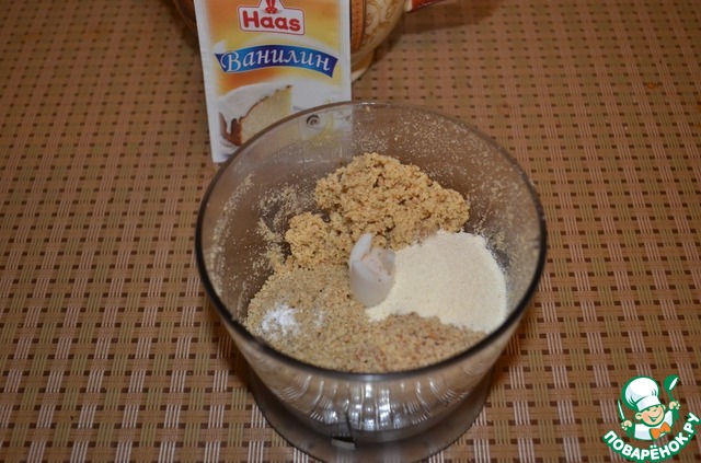 Затем смешать предварительно измельченные орехи и семечки, манку, сахар и ванилин от фирмы HAAS поместить еще раз в блендер и хорошенько перемешать до однородности.