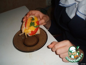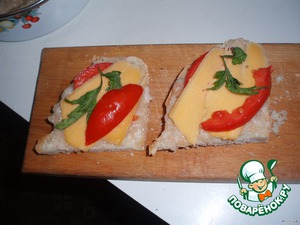 сверху помидор, перец, сыр и майонез