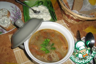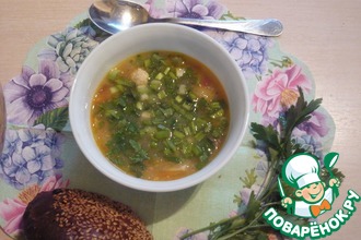 В завершении суп разливается по тарелкам и посыпается нарезанной зеленью базилика или петрушки.