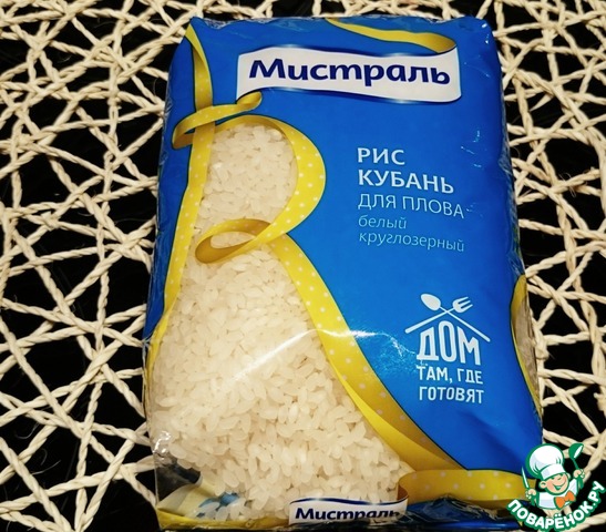 В данном рецепте используется рис круглозерный для плова "Кубань" ТМ Мистраль.