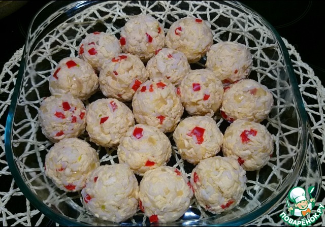 Из риса и курицы формируются шарики, которые выкладываются в форму для запекания. Должно получиться около 20 шариков.