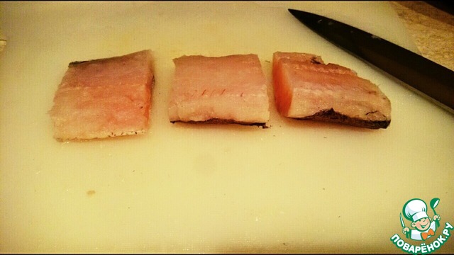 К филе добавляются нарезанный лук, имбирь, вино, масло, соевый соус. Филе оставляется на час для маринования. Можно не убирать в холодильник.