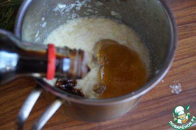 Добавить соевый соус, горчицу, мед и хорошо перемешать.