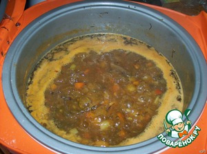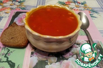 Влить томатный сок или слегка разведенную бульоном томатную пасту, потушить еще 2-3 мин., разбавить бульоном или водой и проварить 10 мин, посолить, всыпать специи и варить еще 10 мин.