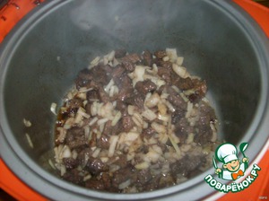 К вытопленному салу добавить раст. масло, раскалить и обжарить мясо при помешивании до подрумянивания. -