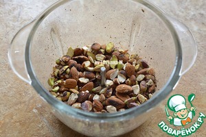 Орехи крупно смолоть или несколько раз порубить ножем, чтобы остались крупные кусочки;