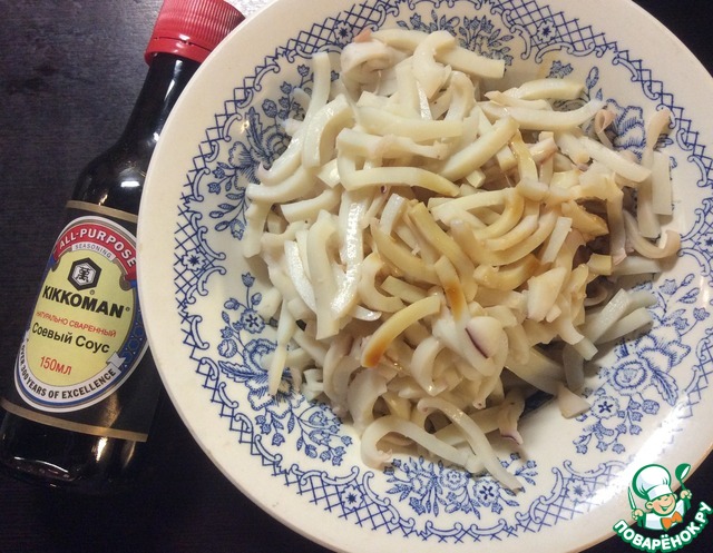 Влить 1 ч. л. соевого соуса, хорошо перемешать.