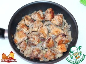 И самое главное, когда жарите курицу, лук, не солите, добавляйте только тогда, когда тушите. Присоленные мясо и овощи при жарке выделяют много сока, а нам надо только румяность и чтобы мясо оставалось сочным.
