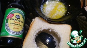 Растапливается сливочное масло, смешивается с соевым соусом.