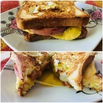 Это супер-питательный, супер-вкусный и быстрый завтрак! Два ломтика хлеба, между которыми нежный тающий сыр, обжаренный карбонад (ветчина/бекона) и яйца любой степени готовности: от "пашот" до "крутых"! Мне хватает половины такого тоста, чтобы как следует насытиться утром.