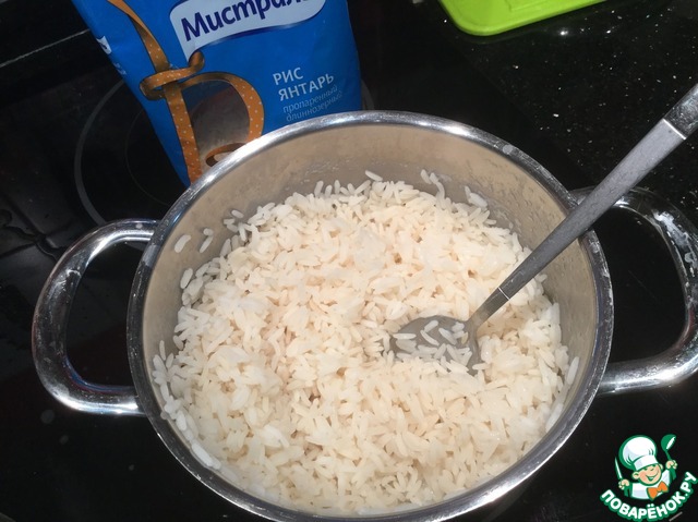 • Рис ТМ МИСТРАЛЬ промойте до прозрачной воды, отварите, и ещё раз промойте холодной водой.