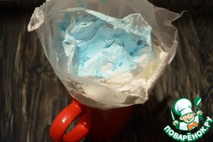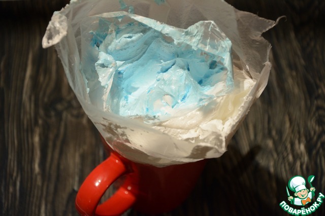 Если хотите сделать безе веселей, то можно добавить пищевой краситель. Я добавила голубой, но это не обязательно.