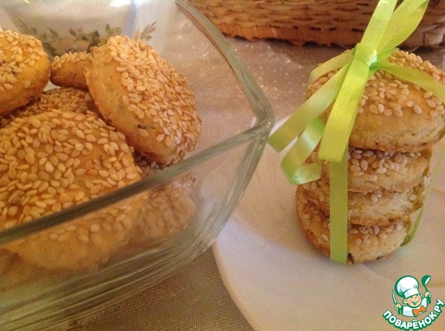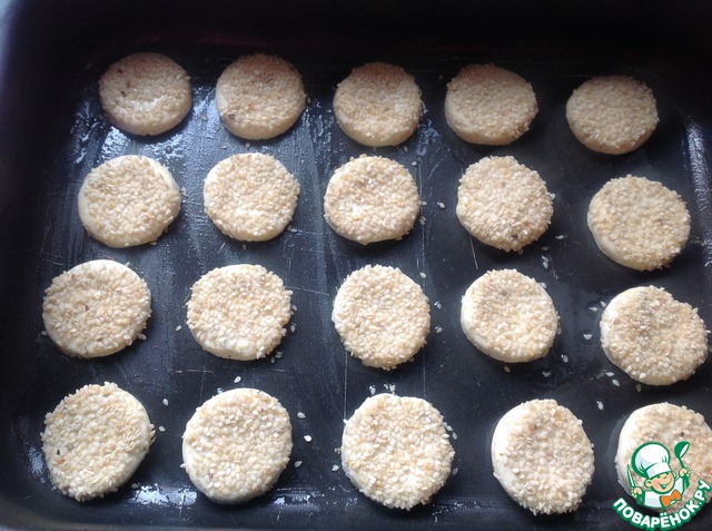 Печенье смазать взбитым яйцом и обмакнуть в кунжут. Выпекать в разогретой до 180 С духовке 10-15 минут в зависимости от размера печенья. Только ни в коем случае не передерживать печенье в духовке, иначе они превратятся в сухарики.