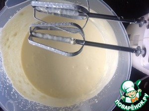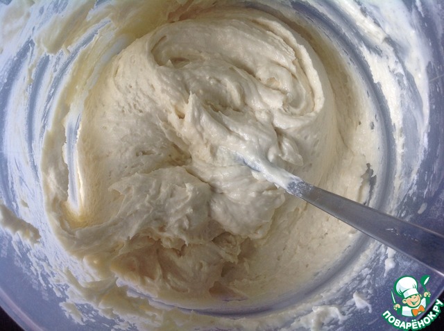 Белки взбить с оставшимся сахаром. Аккуратно ввести белки в тесто.
