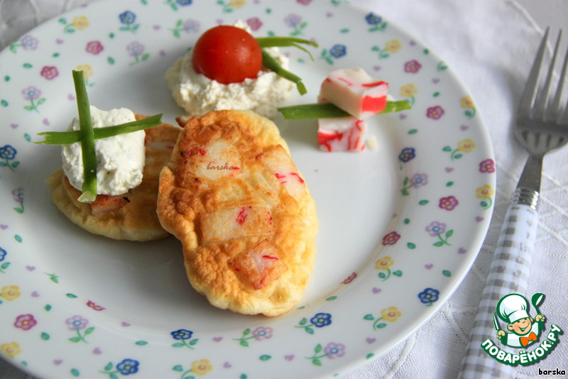 Ингредиенты для «Оладьи с крабовыми палочками»: