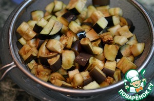 Обжарьте баклажан на растительном масле до мягкости минут 5-7.