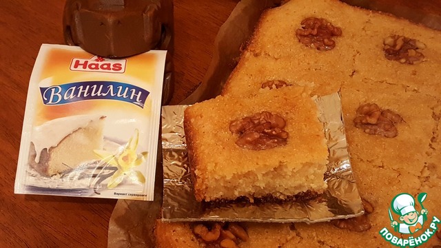 Готовую басбусу достать из духовки, немного остудить, буквально пару минут.