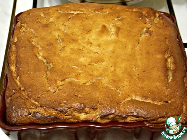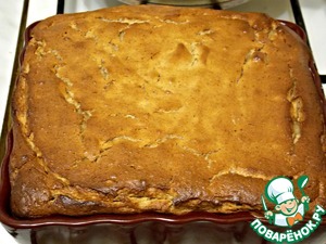 Выпекать при средней t до готовности. Примерно 30-40 мин. Остудить. Она осядет немного, но это нормально.