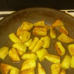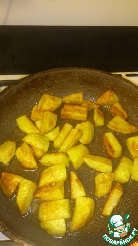 Пока картофель готовится, разогрейте сковороду, добавьте масло и по готовности сам картофель. Жарить до золотистой корочки, крышкой не накрывать. На это уйдет около 5-7 мин.