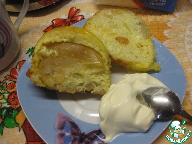 А теперь отрезаем кусочек или два, наливаем чай и подаем обязательно со сметаной!