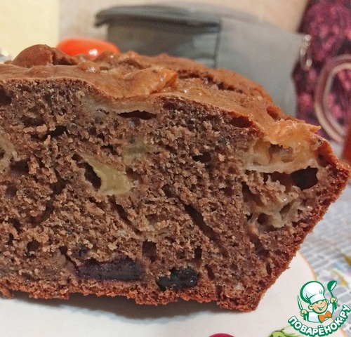 Сочетание ингредиентов необычное, я впервые пробовала добавить мак к яблокам и изюму, но вышло очень вкусно. Вообще, мак придает некую изюминку вроде как обычному кексу. А аромат кэроба завораживает... я его люблю больше, чем какао