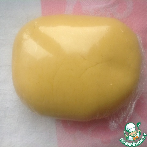 Тесто скатать в шар, завернуть в пищевую пленку и убрать в холодильник на 1 час.