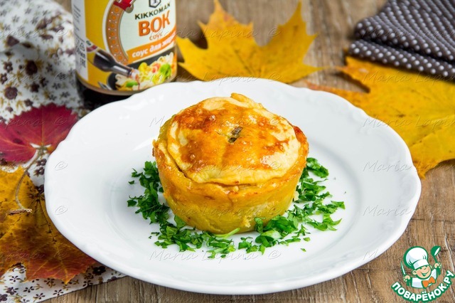 С приходом холодов и осени на столе хочется видеть теплые и уютные блюда. Наваристые супы, румяные пироги, сытные рагу. Хочу предложить вам приготовить очень вкусные и красивые паи с мясным рагу. Мне нравится, что порции получаются индивидуальными и каждому достается свой собственный мини пирог. В рагу я добавила самый осенний овощ - тыкву, а в дополнение к ней зеленый горошек, который неожиданно лопается на зубах и придает блюду немного свежести. С соусом ВОК блюдо получается очень ярким и интересным.