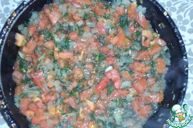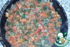 • Лук, фенхель порезать, с помидоров снять шкурку и тоже нарезать.