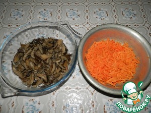 Пока варятся грибы, морковь очистить и натереть на крупной тёрке.